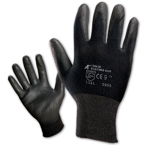 • Pamučne/najlonske sa elastičnom manžetnom, prsti i dlan sa tankim slojem poliuretana crne boje.