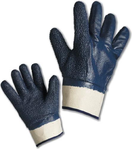 • Duplomočene nitrilne na pamučnoj podlozi sa zadebljanjem na dlanu, palcu i kažiprstu, hrapava završnica, sigurnosna manžetna.