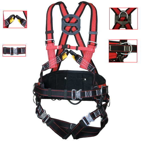 Opasač za visinske radove, kačenje u 3 tačke: na ledjima, na grudima i sa strane, široka i ojačana podrška za ledja, elastični - rastegljivi uprtači pružaju veću udobnost, olakšavaju rad korisniku i ublažavaju udar na grudi, poseduje automatske kopče koje omogućavaju brzu i sigurnu montažu na telo u svim uslovima rada. EN 361 EN 358