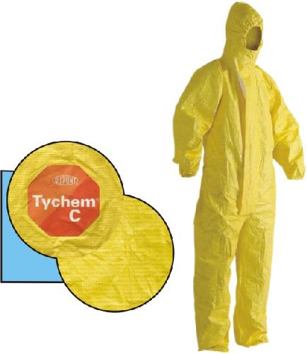 Zaštitni kombinezon sa kapuljačom i varenim šavovima sa zaštitnom trakom, netkani Tyvek polietilen sa slojem polimera, antistatik, bez silikona, otporan na vodu, neorganske materije i ultra fine čestice. CE kat III, tip 3, 4. Žute boje.
